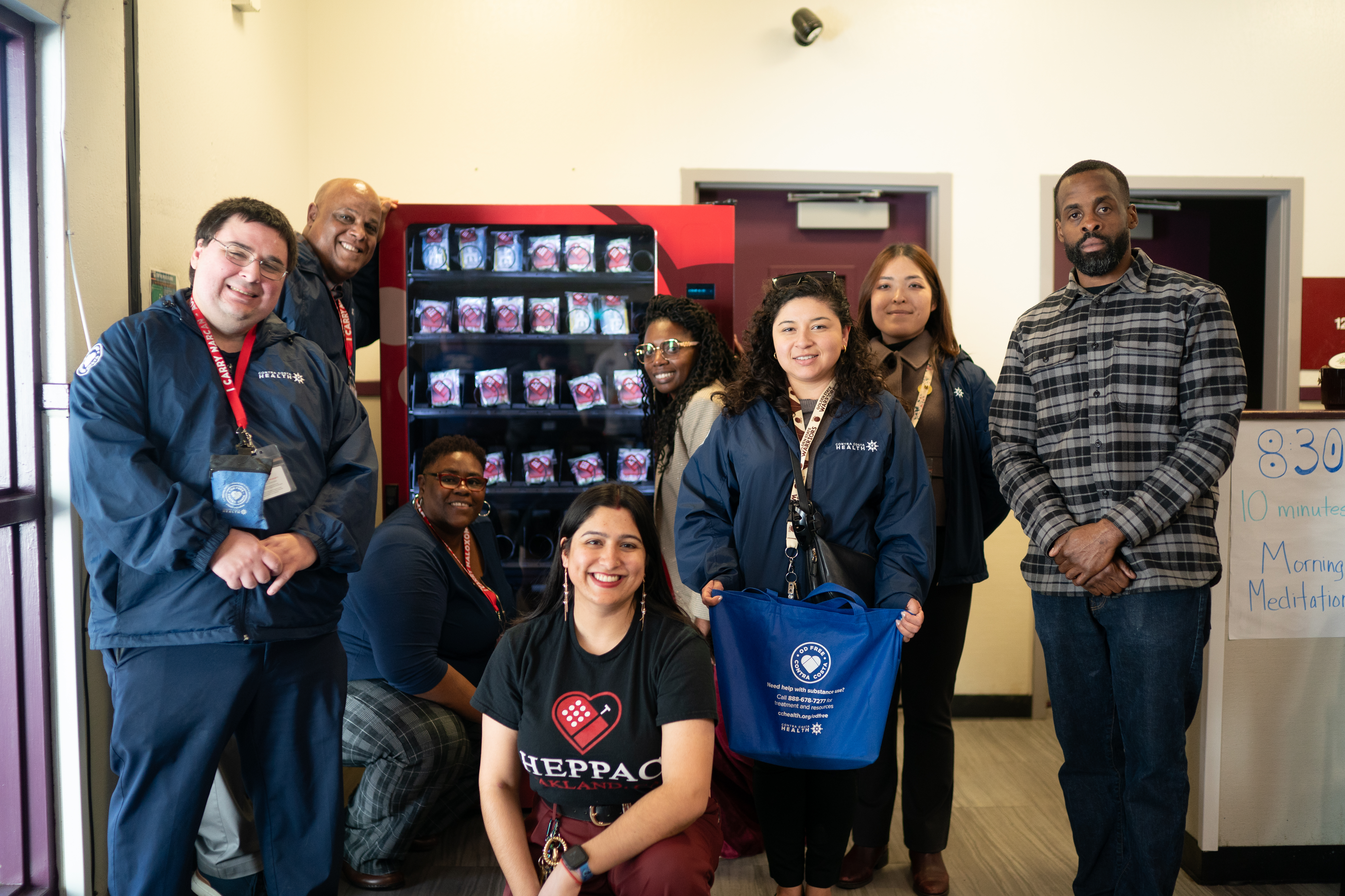 “Having a public health harm-reduction vending machine at the Contra Costa Health Brookside Shelter means residents now have 24/7 access to essential supplies such as hygiene kits, socks, feminine hygiene products, wound care, safer sex kits, overdose prevention naloxone and fentanyl test strips — all at no cost,” said Jicara Collins, public health clinics administrator. “For many, these items may seem easy to find, but for this population, they’re often out of reach.”